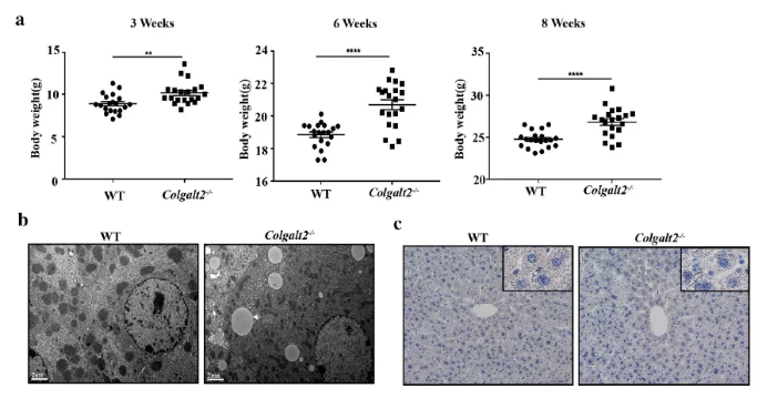 1、Colgalt2基因敲除小鼠中體重和肝臟脂質(zhì)積累增加