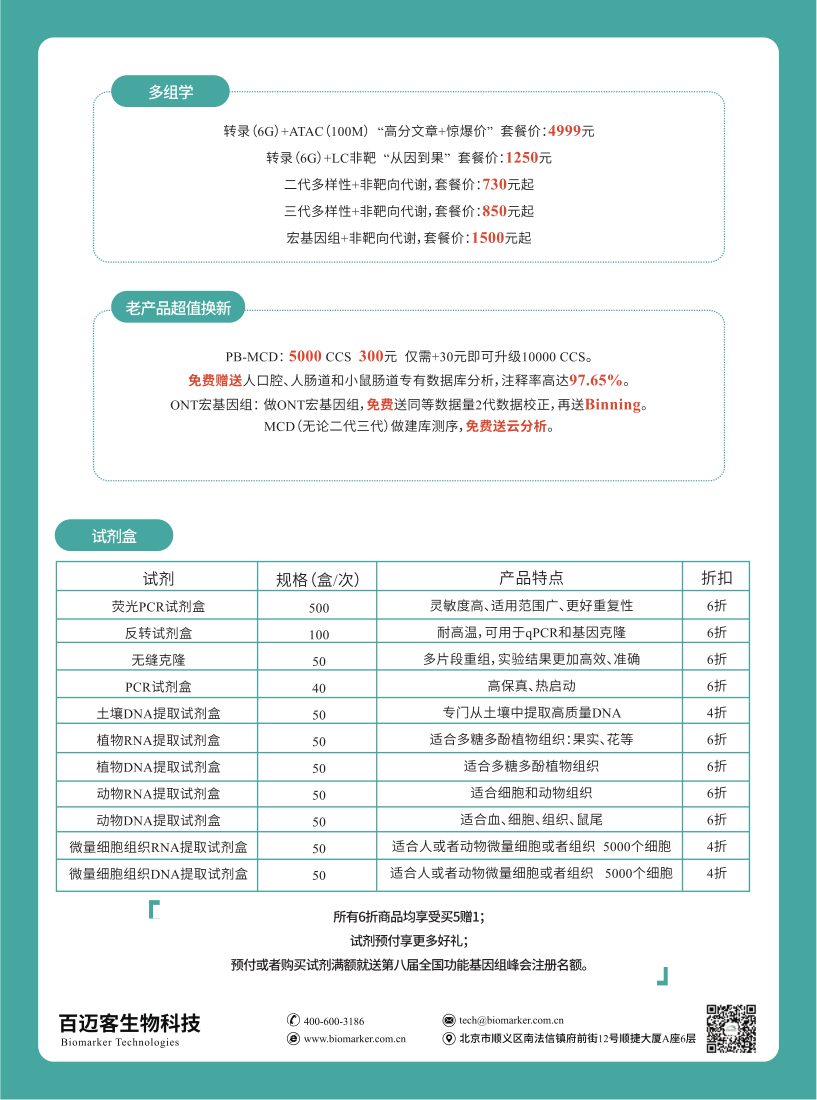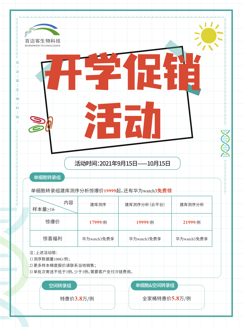百邁客為您提供了最實(shí)惠的開(kāi)學(xué)季促銷(xiāo)好禮,產(chǎn)品覆蓋二代微生物、三代微生物、微生物多組學(xué)以及單細胞系列產(chǎn)品,詳情活動(dòng)可見(jiàn):百邁客醫學(xué)開(kāi)學(xué)促銷(xiāo)活動(dòng),快快上車(chē)~