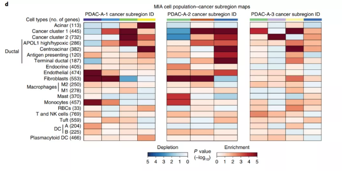 注:熱圖行表示個(gè)細胞類(lèi)型,列為空間組織區域,紅色表示富集,藍色表示缺失