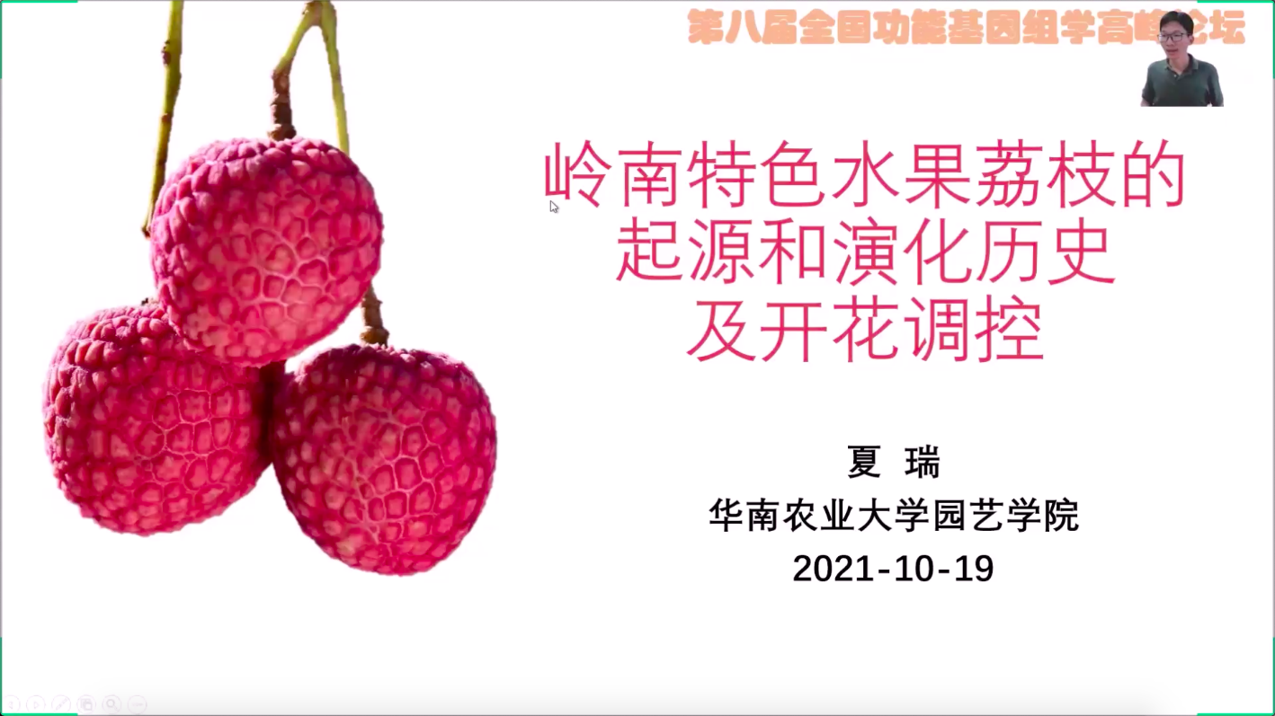 華南農業(yè)大學(xué)夏瑞教授對嶺南特色水果荔枝的起源、演化歷史及開(kāi)花調控進(jìn)行了闡述,展示了無(wú)患子科荔枝“妃子笑”單倍型基因組的構建與荔枝的演化分析,并介紹了72份荔枝種質(zhì)資源的重測序研究,表明栽培荔枝可能起源于兩條獨立的馴化事件;另外,還闡述了荔枝開(kāi)花相關(guān)基因的研究,表示這些關(guān)于荔枝基因組和馴化歷史的結果必將加速荔枝及其它相關(guān)無(wú)患子科植物的基礎研究和遺傳改良。