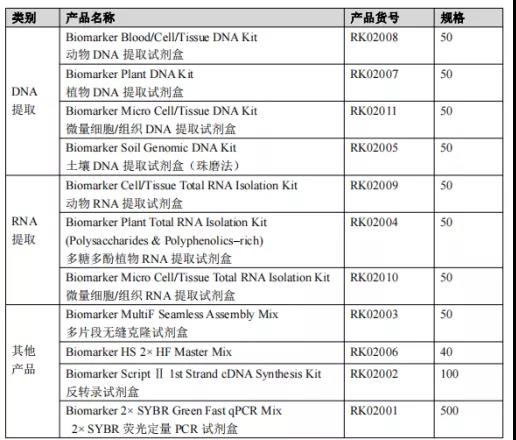 除了DNA提取試劑盒以外,百邁客生物公司還推出了RNA提取試劑盒(動(dòng)物、植物)、以及高保真酶、無(wú)縫克隆試劑盒、反轉試劑盒、qPCR試劑盒。產(chǎn)品性?xún)r(jià)比高、操作簡(jiǎn)單、性能穩定。若想申請試用裝,可聯(lián)系當地的銷(xiāo)售人員,或者咨詢(xún)QQ:1608430349。