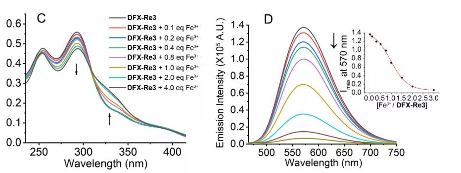 (1)線(xiàn)粒體靶向錸(I)配合物合成與表征,主要加入臨床鐵螯合劑脫鐵石(DFX);