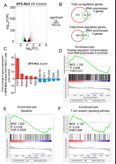 基因本體分析顯示,在DFX-Re3處理后,RNA聚合酶II啟動(dòng)子、染色質(zhì)、生長(cháng)因子活性、細胞內受體信號通路等均發(fā)生了顯著(zhù)變化。
