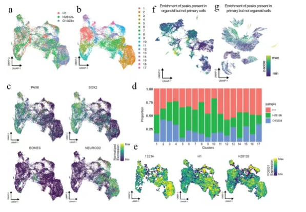 圖9:腦類(lèi)器官和原代組織的peaks比較揭示染色質(zhì)圖譜的顯著(zhù)差異