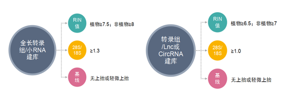 提取完RNA后,都要進(jìn)行一系列的質(zhì)量驗證,質(zhì)量合格的RNA,才能用于后續的建庫、測序、熒光定量等實(shí)驗。一般需要對RNA的濃度、純度、完整性進(jìn)行檢測,具體檢測方法&標準如下: