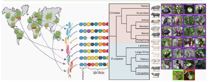 因此對于一個(gè)物種來(lái)說(shuō),如果只使用單一的參考基因組進(jìn)行遺傳馴化變異的研究,可能會(huì )丟失掉大量有意義的基因信息。為了解決這些問(wèn)題并充分理解關(guān)鍵物種中重要性狀形成機理,為育種奠定重要的研究基礎,動(dòng)植物泛基因組研究應運而生。