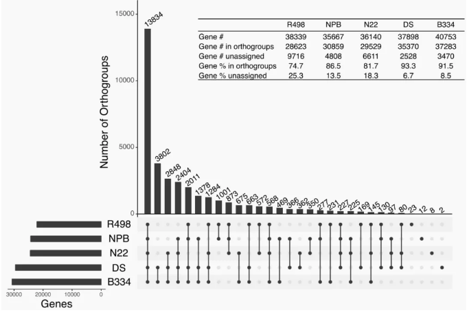 核心基因(core gene):在所有動(dòng)植物品系或者菌株中都存在的基因;非核心基因(dispensable gene):在1個(gè)以及1個(gè)以上的動(dòng)植物品系或者菌株中存在的基因。特有基因(Private):僅在一個(gè)品系中存在的基因。