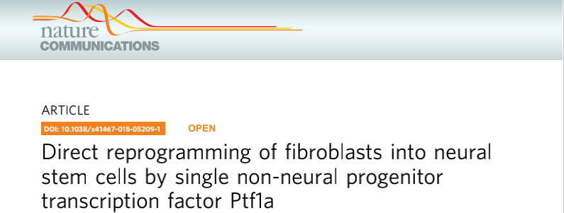 文章標題:非神經(jīng)前體細胞轉錄因子Ptf1a可獨立將成纖維細胞直接重編程為神經(jīng)干細胞