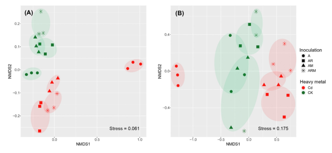 根瘤菌和叢枝菌根真菌(AMF)是重要的共生微生物,對生長(cháng)在金屬污染土壤中的植物有利。然而,目前仍不清楚接種的微生物如何影響根際微生物群落,或者根際微生物群落的后續變化是否有助于提高金屬脅迫下的植物抗性。