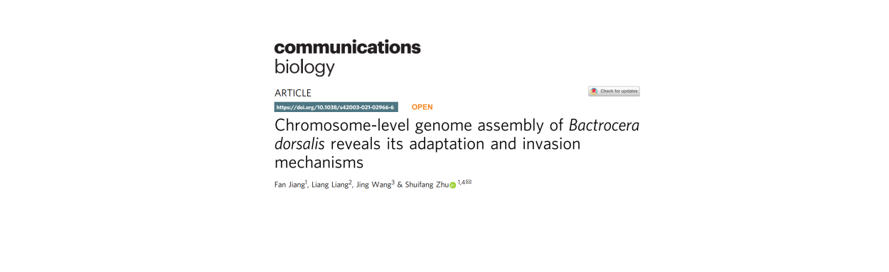 橘小實(shí)蠅(Bactrocera dorsalis)是世界重大入侵害蟲(chóng),可危害250余種果蔬,被列入我國首批重點(diǎn)管理外來(lái)入侵物種名錄。橘小實(shí)蠅宿主廣且定殖傳播力強,與其他實(shí)蠅類(lèi)害蟲(chóng)競爭易成為優(yōu)勢種,一旦傳入非疫區將造成巨大經(jīng)濟損失,嚴重威脅生物安全。目前橘小實(shí)蠅已在全球六大洲至少65個(gè)國家造成危害,而其基因組信息的缺乏使得相關(guān)防控研究難以進(jìn)一步開(kāi)展。