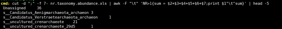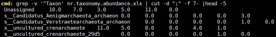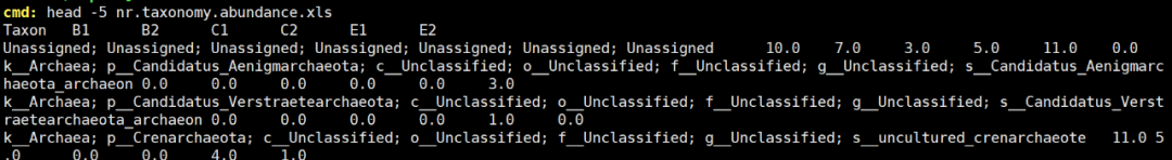 在實(shí)際運用過(guò)程中,我們通常根據需要,通過(guò)管道符“|”同時(shí)使用好幾種生物信息學(xué)Linux命令,避免花費大量時(shí)間找軟件、寫(xiě)代碼,有些情況下可以代替Excel等辦公軟件。如下就是一些linux命令的高級使用實(shí)例。如下是一個(gè)宏基因組的NR注釋結果示例文件: