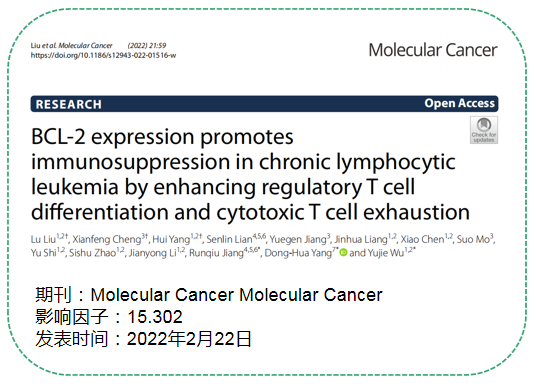 慢性淋巴細胞白血?。–LL)會(huì )導致患者機體感染易感性增加,但并非均與T細胞功能障礙有關(guān),因此,識別具有T細胞缺陷的CLL患者非常重要。前期研究已證明基因BCL-2在CLL中具有重要作用,但尚無(wú)研究證明其在CLL患者T細胞中的作用。本研究確定了BCL-2在CLL腫瘤微環(huán)境中T細胞中的調節作用。