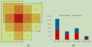 為了評估DEGs的潛在功能,作者使用GO數據庫對差異基因進(jìn)行注釋?zhuān)谒蟹纸M中,在biological process中所占比例大的是“代謝過(guò)程”,“細胞過(guò)程”、“單個(gè)生物過(guò)程”、“對刺激的反應”和“定位”,在cellular component中所占比例是“細胞”和“細胞部分”,“細胞器”和“膜”,在“molecular function”中所占比例大的是“催化活性”、“轉運蛋白活性”、“分子轉導活性”和“核酸”。作者利用KEGG數據庫對DEGs的功能進(jìn)行了分類(lèi),重點(diǎn)是生物學(xué)途徑。根據KEGG注釋?zhuān)瑢?516個(gè)DEGs (NEC_VS_EC)注釋到128個(gè)通路,將2514個(gè)DEGs (EC_VS_ICpEC)注釋到126個(gè)通路,將3555個(gè)DEGs (EC_VS_GE)注釋到126個(gè)通路,將1062個(gè)DEGs (ICpEC_VS_GE)注釋到111個(gè)通路。這些通路主要集中在“代謝途徑”、“次生代謝物的生物合成”、“植物-病原菌相互作用”和“植物激素信號轉導途徑”。此外,還有數十個(gè)基因參與了“類(lèi)黃酮生物合成”、“苯丙烷生物合成”、“玉米素生物合成”、“脂肪酸生物合成”和“不飽和脂肪酸生物合成”。