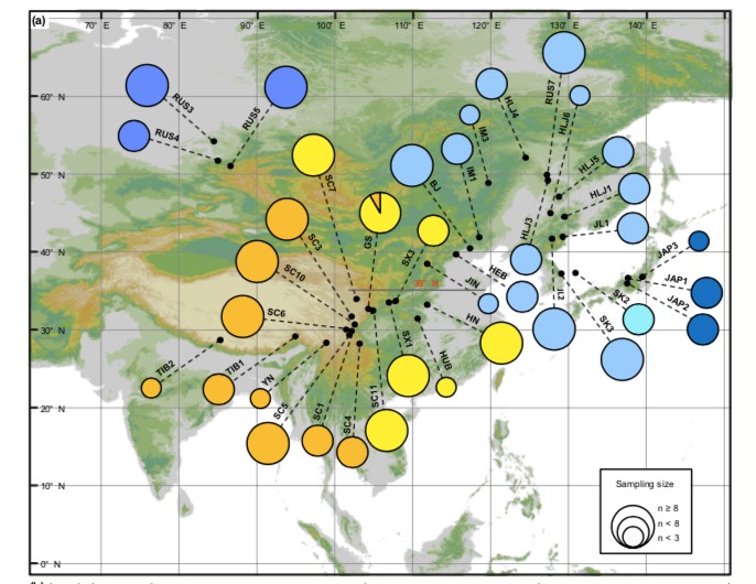 在今年3月份發(fā)表在Molecular Ecology(IF = 6.185)上的題為“Ecological adaptation shaped the genetic structure of homoploid ferns against strong dispersal capacity”的研究中,中國科學(xué)院植物植物研究所張憲春研究組利用SLAF-seq對中華蹄蓋蕨復合群Athyrium sinense complex進(jìn)行簡(jiǎn)化基因組測序,獲取全基因組范圍內有代表性的SNP變異位點(diǎn),對其群體遺傳結構進(jìn)行分析,揭示了蕨類(lèi)植物孢子強擴散能力下生態(tài)適應塑造的遺傳分化格局。