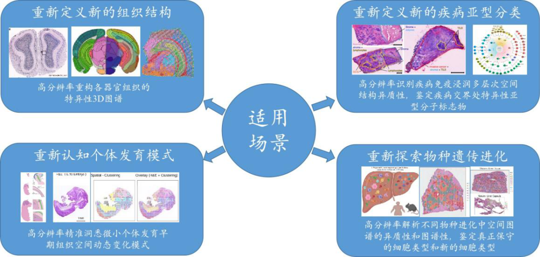 高分辨率價(jià)值在于可在微小組織、腫瘤組織、細胞類(lèi)型亞型分析、識別未知細胞等方面發(fā)揮得天獨厚的優(yōu)勢,百創(chuàng )S1000 亞細胞分辨率可以適用不同個(gè)體、組織、發(fā)育時(shí)期,適用現階段任何組織空間分析信息的獲取,正式開(kāi)啟間轉錄組測序亞細胞時(shí)代。