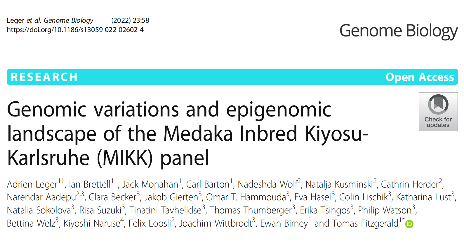 在與這篇文章一起發(fā)表的配套文章中,我們根據Illumina短讀序列與最近、完全組裝的參考基因組(日本南部medaka自交系HdrR)的比對,提供了80個(gè)個(gè)體MIKK面板系[4]的詳細遺傳特征。
