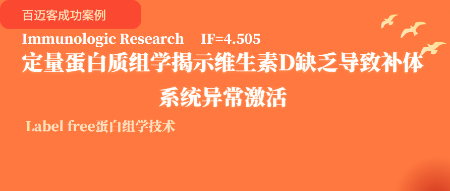 2022年9月30日,銀川市第一人民醫院謝曉敏教授團隊在《Immunologic Research》發(fā)表題為“Vitamin D deficiency leads to the abnormal activation of the complement system”的研究論文,該研究運用Laber free蛋白質(zhì)組學(xué)技術(shù)在疾病研究中的應用,分析了不同維生素D水平下補體系統蛋白質(zhì)表達的變化,發(fā)現了維生素D缺乏不僅會(huì )導致胰島素抵抗和糖代謝紊亂,還會(huì )導致蛋白質(zhì)表達異常,從而導致補體系統的異常激活。為進(jìn)一步研究維生素D與免疫系統的關(guān)系提供了新的理論基礎。百邁客生物為該研究提供了蛋白組檢測服務(wù)與部分分析工作。