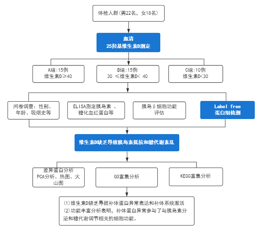 在該研究中,作者應用高通量非靶向蛋白質(zhì)組學(xué)技術(shù),根據維生素D水平,對不同空腹血糖狀態(tài)下的體檢人群進(jìn)行分組,探討維生素D缺乏對人體補體系統激活的可能機制。為蛋白質(zhì)組學(xué)在疾病研究中的應用提供了一個(gè)很好的案例。