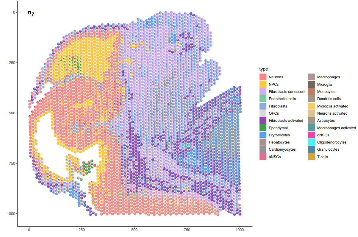 spatialDWLS首先使用細胞類(lèi)型富集分析方法來(lái)確定哪些類(lèi)型的細胞在每個(gè)位置具有較高的概率,然后使用阻尼加權最小二乘法(DWLS)的擴展來(lái)確定指定位置的細胞類(lèi)型的組成。與現有的去卷積方法相比,關(guān)鍵區別在于SpatialDWLS包含額外的過(guò)濾步驟,以去除不相關(guān)的細胞類(lèi)型,從而增強特異性。