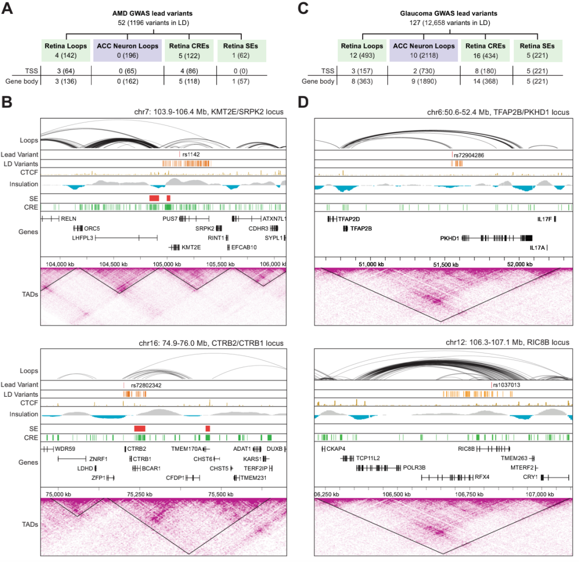 2)視網(wǎng)膜調控基因組拓撲結構與AMD和青光眼相關(guān)遺傳變異的首次詳細整合;