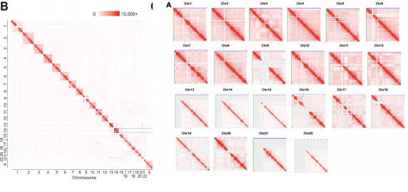 Hi-C檢測每個(gè)常染色體上染色體內和染色體間的互作