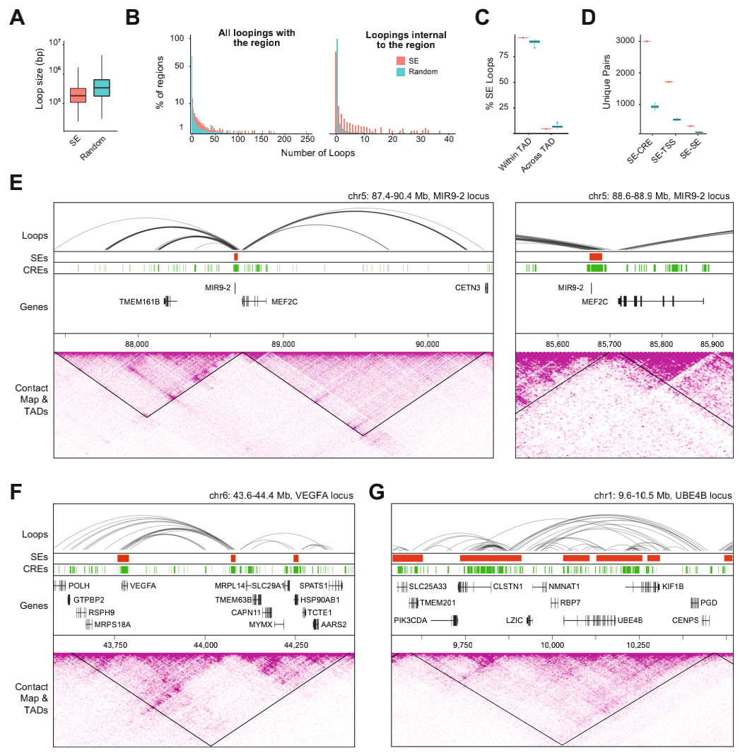 4、SE在TAD內部loops富集并參與基因表達調控