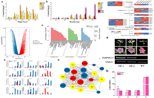 多組學(xué)研究在植物領(lǐng)域中的應用案例3、代謝組+轉錄組聯(lián)合分析揭示了紫茶花中苯類(lèi)-苯丙烷色素和香氣的關(guān)系