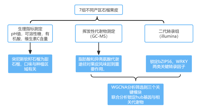 多組學(xué)研究在植物領(lǐng)域中的應用案例2、多組學(xué)聯(lián)合解析突尼斯軟籽石榴揮發(fā)性風(fēng)味物質(zhì)生物合成機制