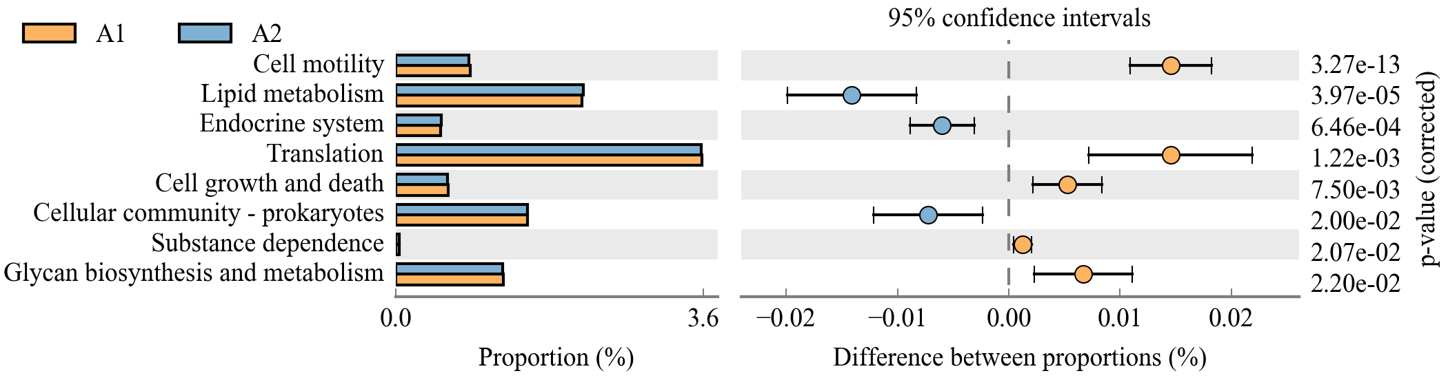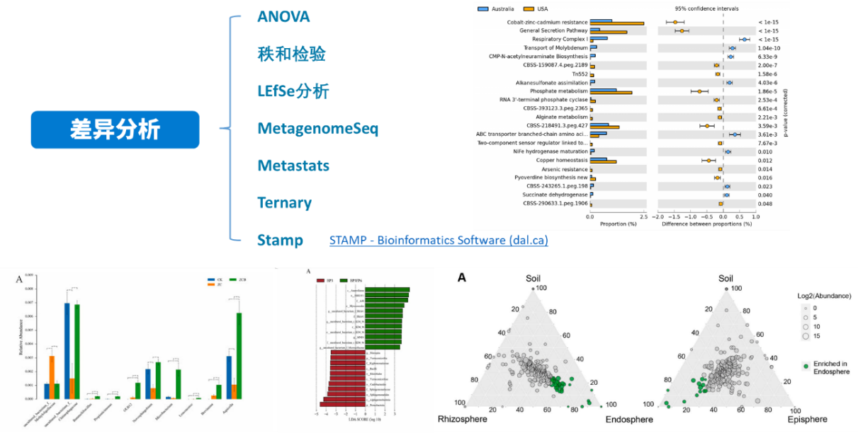 該分析可以對兩組或多組樣品的物種、基因或者功能進(jìn)行顯著(zhù)性差異分析,并對 p值進(jìn)行FDR校正。