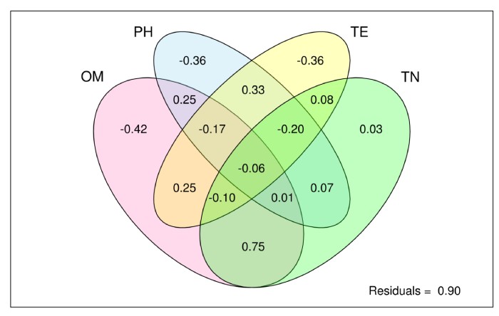 VPA分析(方差分解分析):VPA,全稱(chēng)Variance Partitioning Analysis,中文稱(chēng)為方差分解分析,該分析的目的是確定指定的環(huán)境因子對群落結構變化的解釋比例。通常在CCA/RDA的排序分析方法可以得到所有參與分析的環(huán)境因子對群落變化的解釋比例。使用R語(yǔ)言vegan包(version:2.3-0),varpart函數進(jìn)行分析;分析前首先需要對環(huán)境因子進(jìn)行一個(gè)分類(lèi),一般支持2-4類(lèi),默認使用大于等于2個(gè)環(huán)境因子進(jìn)行此分析。