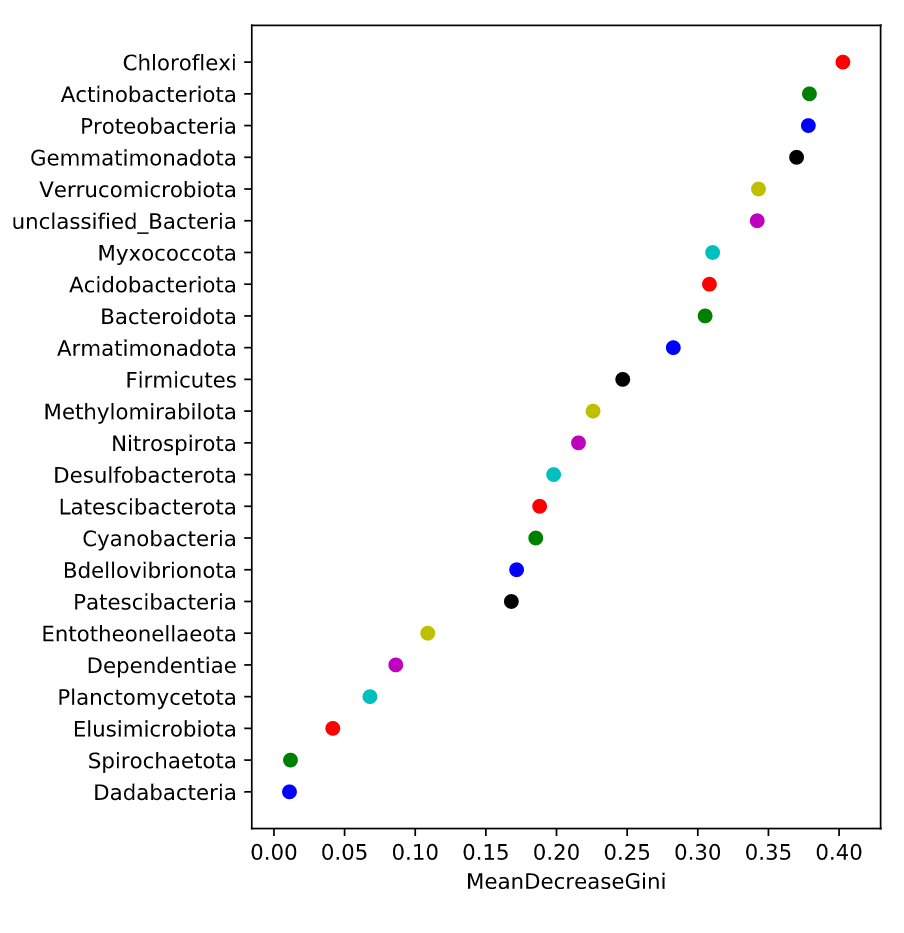 隨機森林分析:Random forest 分析,隨機森林指的是利用多棵樹(shù)對樣本進(jìn)行訓練并預測的一種分類(lèi)器,是機器學(xué)習的一種。利用隨機森林分析可以幫我們找到數據中重要的特征:在微生物組中就是哪些微生物組成可以作為特征進(jìn)行各種預測;另外,隨機森林可以利用這些重要特征構建模型用于分類(lèi)預測(分類(lèi)變量)或者回歸預測(數值型變量);隨機森林分析建議分組內樣品至少30個(gè)以上,樣品數太少影響準確性。 隨機森林分析,一般將數據劃分為訓練數據集(train data)和測試數據集(test or validate data),訓練數據集用于構建預測模型,測試集用于查看模型的準確性。