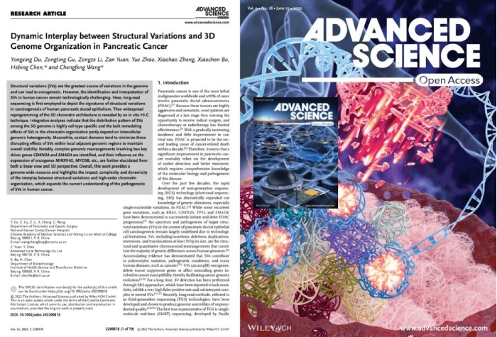 Du Y, Gu Z, Li Z, et al. Dynamic Interplay between Structural Variations and 3D Genome Organization in Pancreatic Cancer. Adv Sci (Weinh). 2022 Jun;9(18):e2200818. doi: 10.1002/advs.202200818.