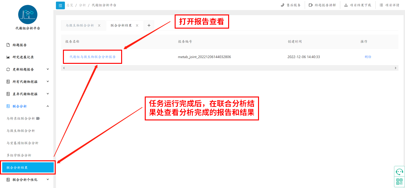 提交分析:等待分析完成獲得分析報告結果,一般任務(wù)運行周期1-2h。任務(wù)運行完成后,在聯(lián)合分析結果處查看分析完成的報告和結果,示例圖如下: