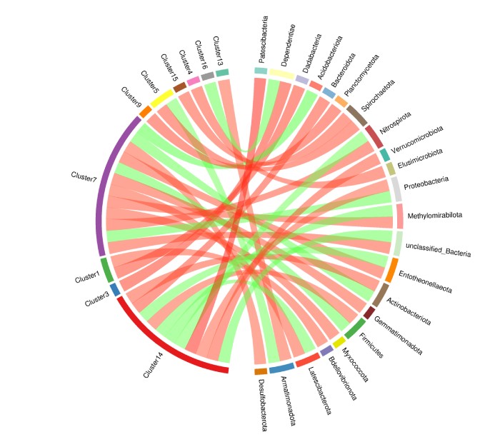 代謝物簇-微生物相關(guān)性和弦圖