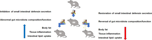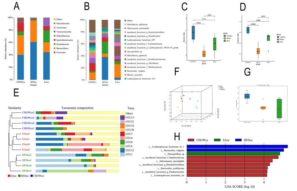 一句話(huà)總結:EA通過(guò)促進(jìn)腸道防御素、拯救失調的盲腸微生物菌群,以協(xié)同模式減少脂質(zhì)吸收來(lái)發(fā)揮抵抗肥胖作用。
