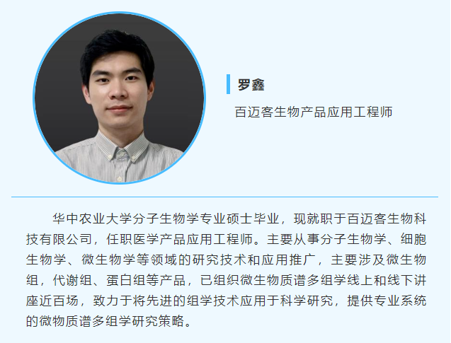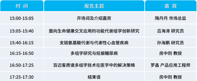 2023年3月22日中國生物物理學(xué)會(huì )腸道菌群分會(huì )房中則副秘書(shū)長(cháng)牽頭與百邁客生物聯(lián)合舉辦“?質(zhì)譜技術(shù)與多組學(xué)前沿應用線(xiàn)上研討會(huì )”。本次研討會(huì )由百邁客醫學(xué)市場(chǎng)總監隋丹丹主持,邀請了上海交通大學(xué)系統生物醫學(xué)研究院呂海濤研究員,天津醫科大學(xué)孫海鵬研究員,天津醫科大學(xué)房中則教授,共同探討質(zhì)譜多組學(xué)技術(shù)在疾病研究中應用。