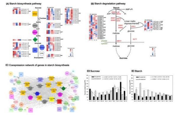 五、差異轉錄本在碳水化合物代謝和蔗糖和淀粉含量中的表達