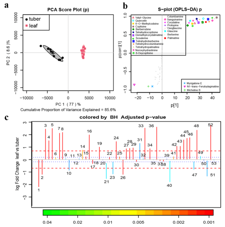 延胡索提取物的塊莖和葉組QTOF-MS數據的代謝組學(xué)多元分析