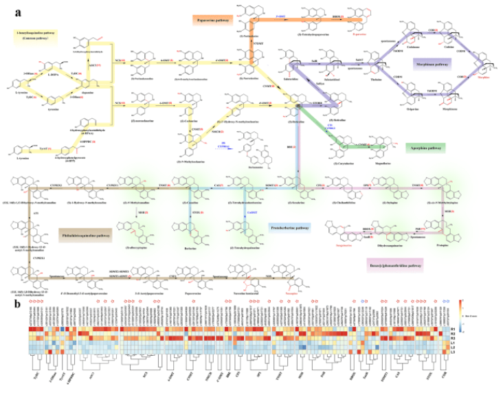 對合成原小檗堿型芐基異喹啉生物堿的相關(guān)基因進(jìn)行了挖掘,為后期利用合成生物學(xué)與植物代謝工程生產(chǎn)延胡索中具有鎮痛效果的痕量化合物奠定了基礎。