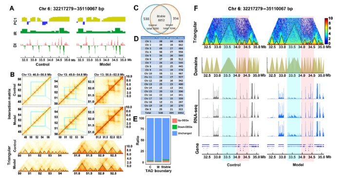 圖4 Hi-C和RNA-seq檢測NAFLD小鼠肝臟中TADs及受TADs影響的DEGs的變化