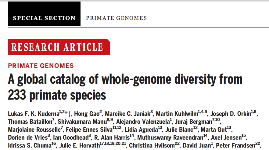 題目:233種靈長(cháng)類(lèi)物種全基因組多樣性比較分析