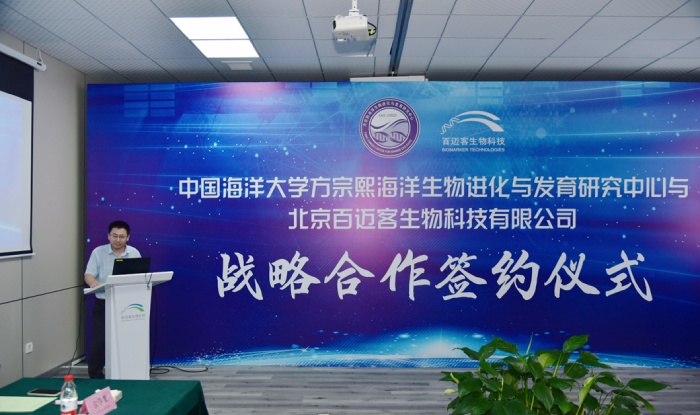 隨后由中國海洋大學(xué)董波教授發(fā)表致辭,董波教授介紹了中國海洋大學(xué)方宗熙海洋生物進(jìn)化與發(fā)育研究中心近年海洋模式動(dòng)物研究進(jìn)展及重點(diǎn)科研攻關(guān)成果,同時(shí)表示:期望依托雙方的優(yōu)質(zhì)資源和創(chuàng )新性的技術(shù)經(jīng)驗實(shí)現價(jià)值共享,并通過(guò)持續的加強交流合作、協(xié)同發(fā)展。