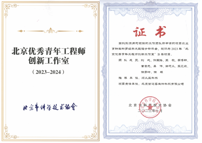 近日,百邁客青年工程師劉東源作為第二十四屆“北京優(yōu)秀青年工程師”稱(chēng)號的獲得者,代表公司申報“農業(yè)育種生物多組學(xué)大數據分析平臺”項目,成功入選北京市科協(xié)認定的2023年“北京優(yōu)秀青年工程師創(chuàng )新工作室”(以下簡(jiǎn)稱(chēng)“青創(chuàng )室”)。