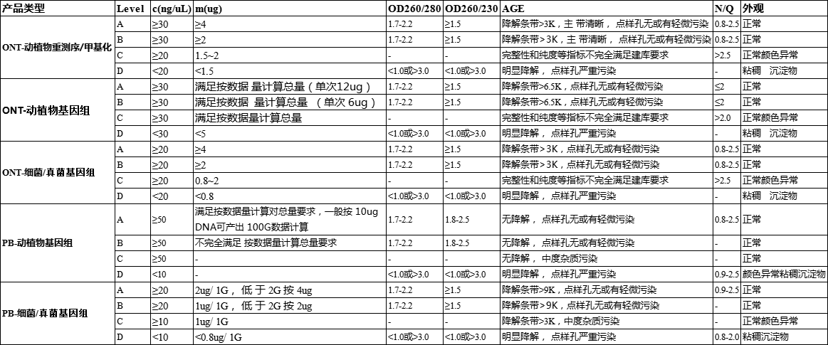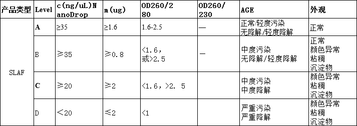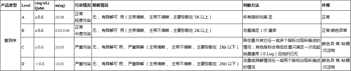 level D:質(zhì)量完全不滿(mǎn)足建庫測序要求,不建議使用的樣品。