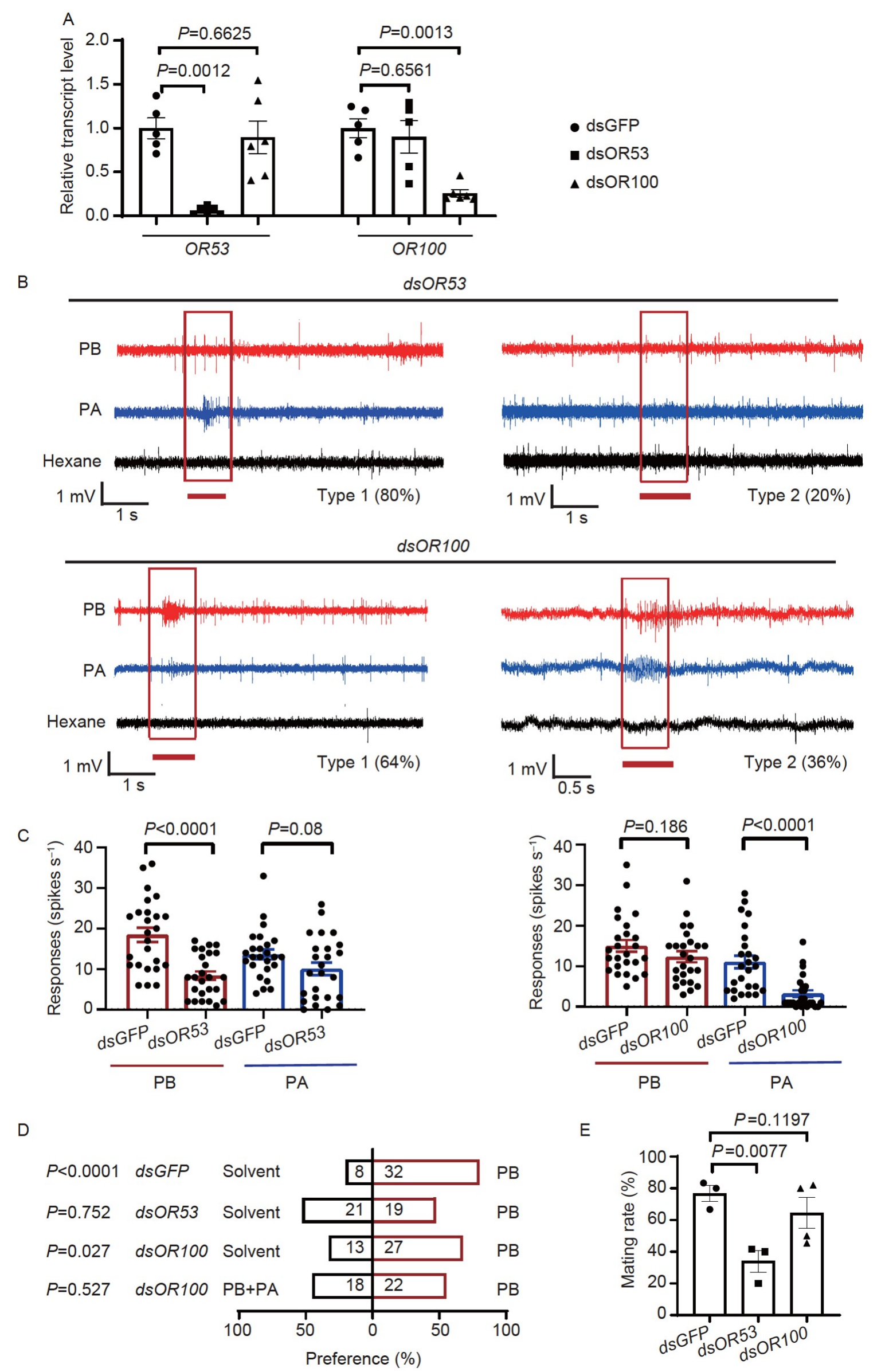 圖3-OR53和OR100負責感知成年雄蟲(chóng)的性信息素