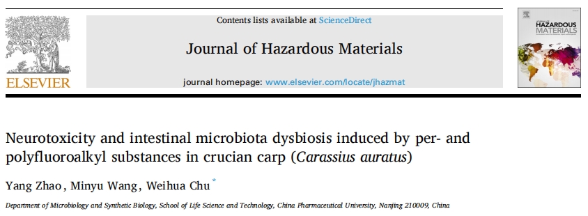 8月22日,中國藥科大學(xué)儲衛華團隊以淡水水生動(dòng)物鯽魚(yú)為模型對全氟和多氟烷基物質(zhì)(PFAS)的神經(jīng)毒性和菌群紊亂開(kāi)展了深入研究,研究成果以題為“Neurotoxicity and intestinal microbiota dysbiosis induced by per- and polyfluoroalkyl substances in crucian carp (Carassius auratus)”發(fā)表在Journal of Hazardous Materials上。