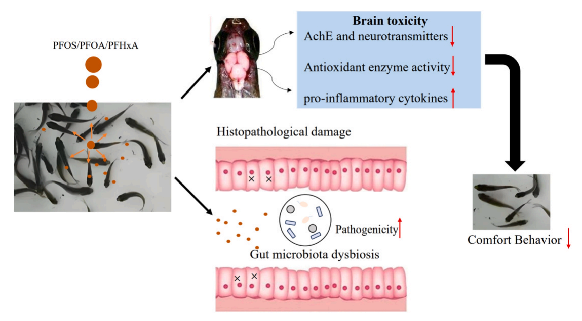 該實(shí)驗主要研究了PFAS對鯽魚(yú)神經(jīng)系統和腸道菌群的毒性。研究結果表明,環(huán)境相關(guān)濃度的PFAS可以引起鯽魚(yú)腸道微生物群的破壞,并進(jìn)一步引起大腦神經(jīng)化學(xué)和行為模式的變化。這些變化可能與大腦的氧化損傷以及應激和炎癥相關(guān)基因的表達有關(guān)。這些結果為評估PFAS污染物在水生環(huán)境濃度下的毒性提供了見(jiàn)解。