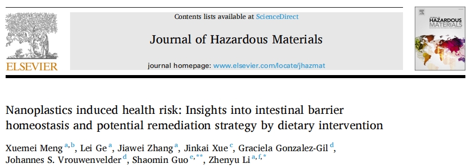 文章標題:Nanoplastics induced health risk: Insights into intestinal barrier homeostasis and potential remediation strategy by dietary intervention