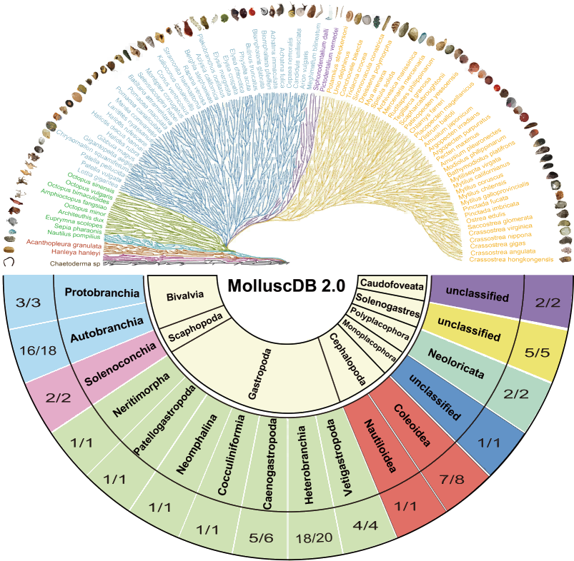 圖2-MolluscDB 2.0數據庫物種分類(lèi)和覆蓋情況總覽