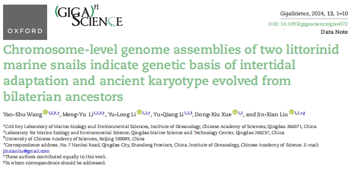 海洋所劉進(jìn)賢課題組發(fā)布了西北太平洋巖相潮間帶兩種常見(jiàn)濱螺科生物——短濱螺和中華濱螺高質(zhì)量染色體水平基因組參考序列,并基于比較基因組學(xué)分析探究了濱螺科生物適應多變巖相潮間帶環(huán)境的分子機制,推演了由兩側對稱(chēng)動(dòng)物祖先到濱螺的核型演變歷程,相關(guān)研究結果發(fā)表于國際期刊GigaScience。